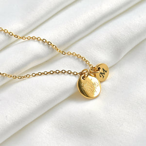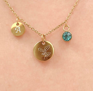 Make a statement with this dainty birth flower necklace! Created in stainless steel, the design features a 12 mm engraved coin birth flower charm and birth stone in a bezel setting.