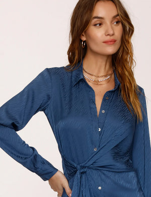 Easy enough to wear on a casual day but polished enough to wear on a night out, the Brynn Dress is versatile and ultra-flattering. It has a button down closure and asymmetric tie detail that highlights the waist perfectly. Pair with knee-high boots for a look that transitions perfectly from day to night.