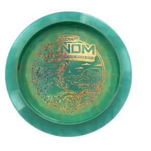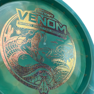 Anthony Barela 2023 Tour Series - The 2023 Tour Series Venom symbolizes one of Discraft's newest Elite Team members, Anthony Barela. Engineered for Anthony, the Venom has been retooled and configured to maximize distance potential for those big arm throwers. Sprinkled with easter eggs, this release emphasizes transformation and those willing to embrace change in pursuit of their goals.