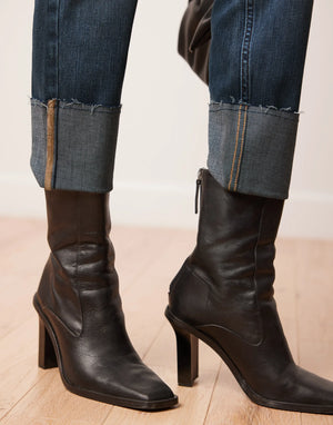 The Emily. Our slim silhouette inspired by 'mom jeans' has a slim fit around the hips and tapered cut throughout the leg.