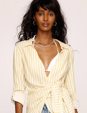 Made of our airy striped cotton, the Finch Tunic is the perfect cover-up to wear while lounging all day and strolling along the beach. This wrap tunic is breezy and cut to flatter the figure. Wear it over your favorite swimwear or over shorts and a light tank.