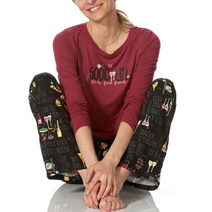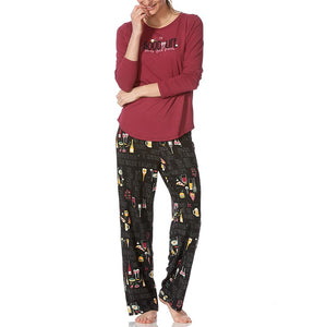 HUE Printed Knit Tee and Pant 2 Piece Pyjama set is perfect for gifting! The set includes: a long sleeve relaxed fit top with front design and novelty print pyjama pants with a comfort elastic waistband. Custom-designed and hand-drawn by HUE in-house NYC studio artists, bringing one-of-a-kind character and charm to your sleep wardrobe.