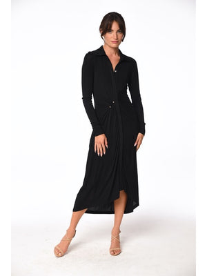 Introducing our Flattering Black Shirt Dress - the perfect blend of style and comfort! This dress is designed to make you look and feel your best, featuring flattering ruched asymmetrical details that enhance your silhouette. Crafted from a luxuriously soft jersey fabric, you’ll experience all-day comfort without sacrificing style.