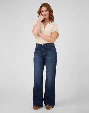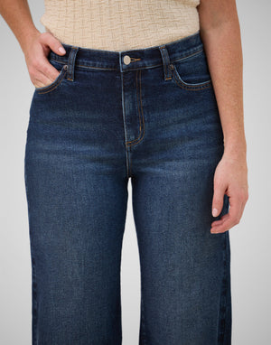 These dark indigo jeans feature a timeless wash, flattering classic rise, and a 32" inseam. Pair them with a tee and flats for day or a printed top and heels for night.