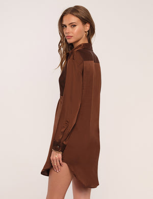 Perfect for happy hour or a weekend brunch, the Nomi Dress is a no-brainer. It has a twisted front to highlight the figure and is made from our soft washed satin. Pair with mules or OTK boots for a ready-to-go look.