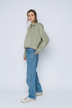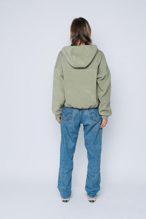 In our double sided sherpa fleece, this will be your new favourite sweatshirt. A heavyweight fleece fabric with a sherpa finish, this is very soft and features a front kanga pocket and back yoke using the reverse side fabric detail, half zip and large hood with a high front neck, for an especially cozy feel.