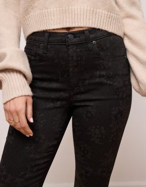 Yoga Jean Rachel skinny with tonal black floral design.