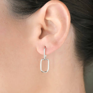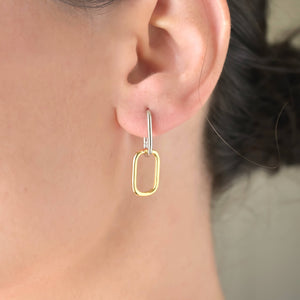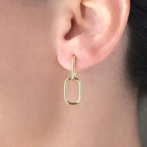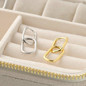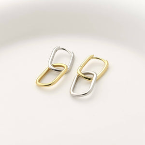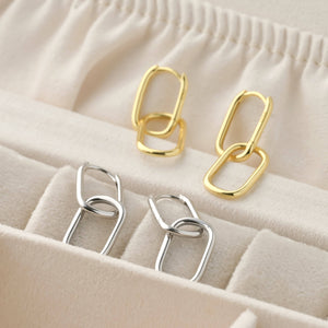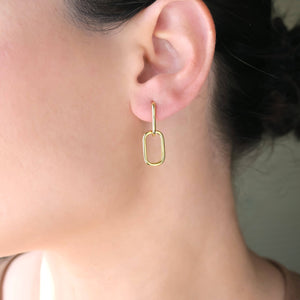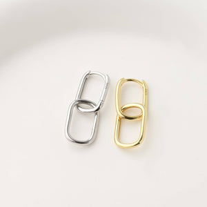 Our versatile Double U Shaped Hoops are available in both gold and silver. What sets these paperclip hoops apart is the second removable paperclip hoop, offering the choice of wearing them as one or double hoops for a unique look. You can also opt for a playful, mismatched style by choosing one gold and one silver. *Sold as a pair. Material: Sterling Silver Finish: 18k Gold Vermeil or Silver Size: 15x10 mm each hoop/ thickness 1.5 mm/ total length: 30 mm