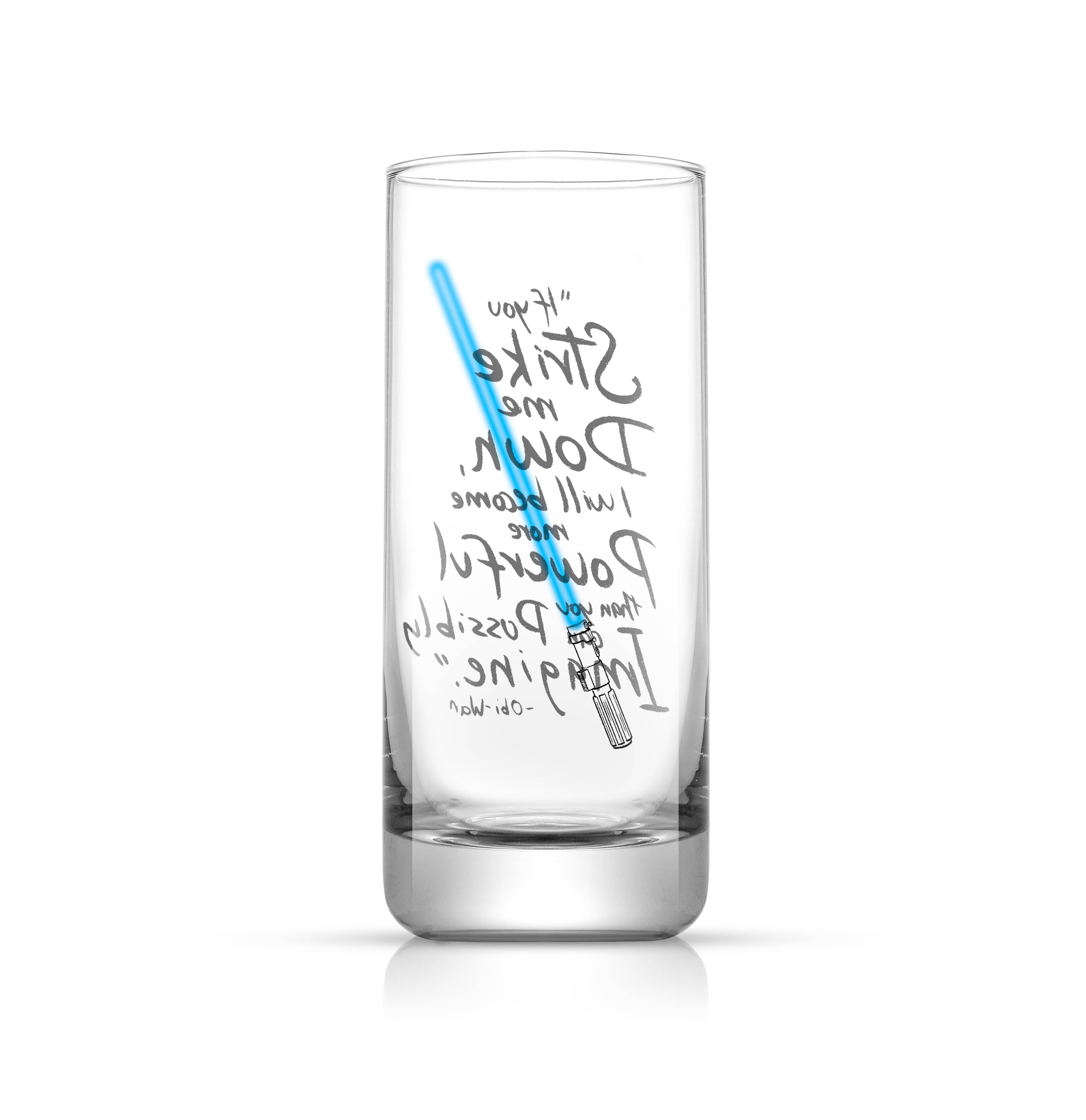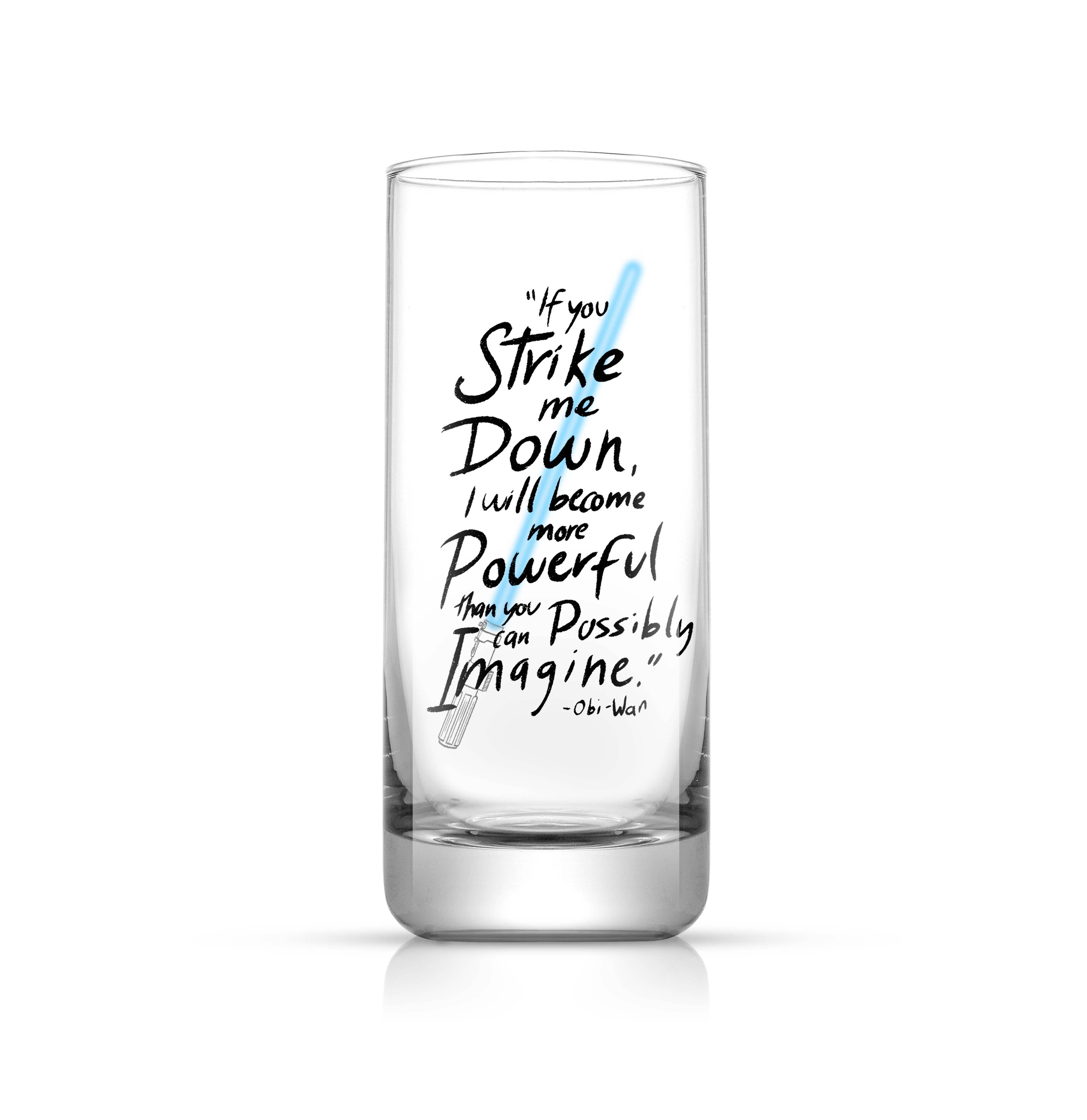 Make drinks that are out this world with The New Hope Collection, celebrating the cult classic original Star Wars™ film in glassware! This is the Obi-Wan Kenobi™ Tall Drinking Glass featuring blue lightsaber and well-known quote in a fired decal that won’t come off! These are perfect for everyday use or entertaining friends & family. They have a unique design that is a perfect addition to your home and the upscale packaging makes this a perfect gift idea for weddings, anniversaries, holiday parties and any other festive occasion.