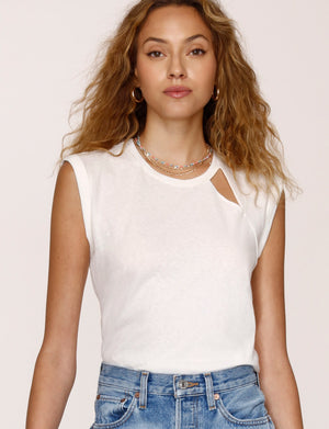 The Tavi Tee is a twist on a classic, cut from dreamy soft jersey with rolled sleeves that showcase your arms. This easy tee has a cutout detail near the neckline for added flair.