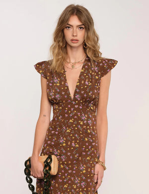 The Zanzibar Dress is cut from our flowery print satin and is subtly sexy. Perfect for any spring wedding or special ocassion, pair it with sandals for casual affairs or heels to dress it up.