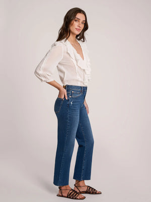 Discover the perfect balance of edgy and effortless with our straight-leg jeans. Featuring a raw hem and a unique wash that blends deep blue with light grey, these jeans boast a soft, greyish undertone. Subtle rips and carefully placed distressed details add character without going overboard—making them a versatile staple for any look.