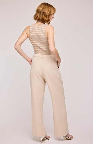 Made of a crepe suiting fabric, the Luna is an effortless trouser pant silhouette designed for everyday wear. Features include side seam pockets, front pleats, and back waist darts for a perfectly tailored look. Complete the look with the Vivian vest or Hawthorne blazer.