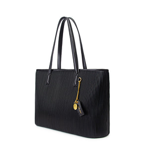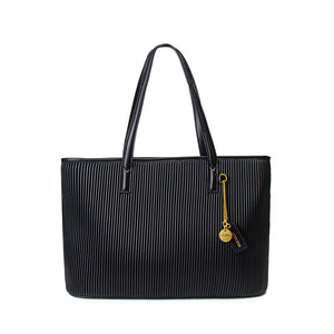 'The ultimate tote that will follow you through life - school, work, shopping, baby-ing, and even grandmother-ing. Made with premium pleated vegan leather, it's buttery soft and lightweight. Designed with lots of space, you could fit a laptop, a cardigan for the unexpected chilly weather, a water bottle, a notebook, and even a small umbrella for those rainy days. Like things super organized? Pair this with an organizer pouch like our ''Sally'' pouch, and you'll be ready for whatever life throws at you. The exterior of the bag is made with recycled vegan leather that is made from recycled plastic bottles, and our lining is created from a durable fabric that is also created from recycled plastic bottles
