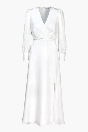 An eternal romance begins with the perfect dress! The Brandy Sateen Maxi Dress is sure to stun with a glamorous faux wrap with gathering at the waist, self-tie sash, long cuffed sleeves, and a side slit.