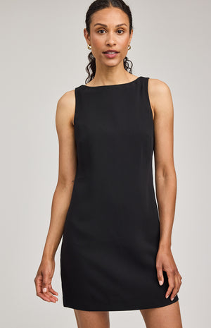 The Etta dress is made of a crepe suiting fabric and is fully lined for ease of wear. Features include a boat neckline and invisible zipper closure.