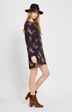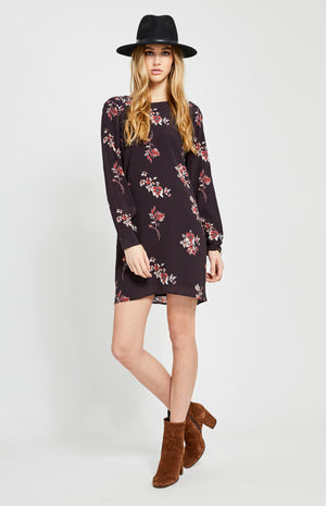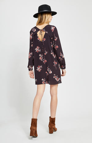 Long sleeve printed dress with tie back detail.