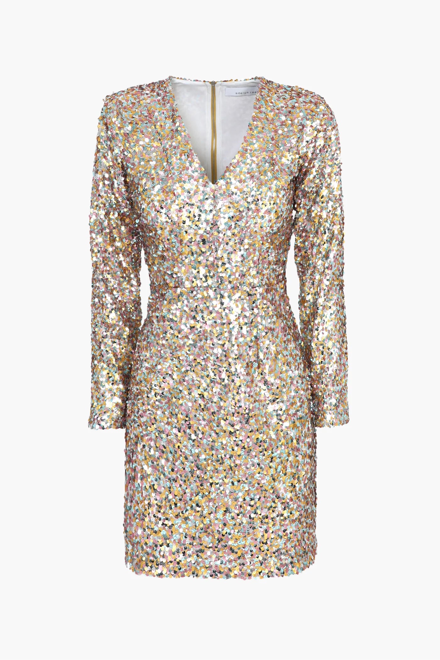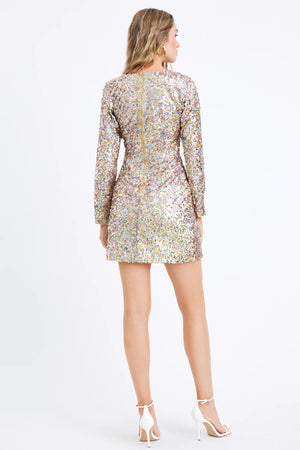 Sparkling with multicolor sequins, this long sleeve mini dress is sure to turn heads and have you shimmying all night long. Get ready to show off your style and be the envy of the party with a snatched waist and flattering V-neck!