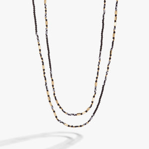 Celebrate loyalty and adventure with the Ride or Die Convertible Necklace/Bracelet. Designed with a 32.5" length that can be worn long or wrapped five times as a bracelet, this meaningful piece spells out "Ride or Die" in Morse code using a bold mix of gold-tone metal beads, jet beads, and black and white seed beads. Strung on elastic for effortless wear, it's a tribute to the ones who always have your back.