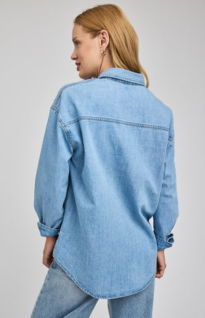 The Whitney button-down shirt is made of a denim fabric that has been specially washed for a perfectly lived-in look. Features include a patch pocket and side slits.