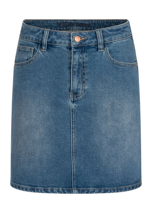 Add a classic touch to your wardrobe with our Forget me not denim Mini Skirt. Designed with a flattering classic rise and a 17” inseam, this skirt is the perfect balance of style and comfort. The subtle sandstone stitching and copper hardware, including a YJ logo button and rivets, give it a polished finish. Made with a YKK zipper and a vegan leather YJ patch at the back waist, it’s a timeless, durable piece that you’ll reach for season after season.