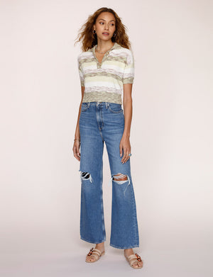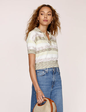 Tomboy chic. The Alexa Polo channels vintage vibes with a twist. Delicately knit in a fun striped pattern, this sweater polo features a collar and button up detail. Pair with relaxed jeans for a boy-meets-girl look.