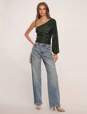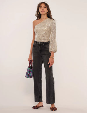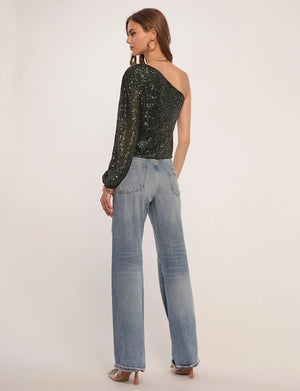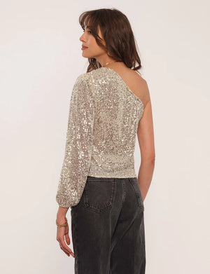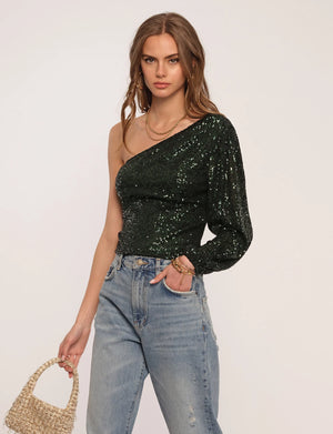Sparkling stunner. Our Seela Top is perfect for date night. It is slim-fitting with an asymmetrical fit for showing some skin. Pair with denim and a strappy heel for the perfect date night look.