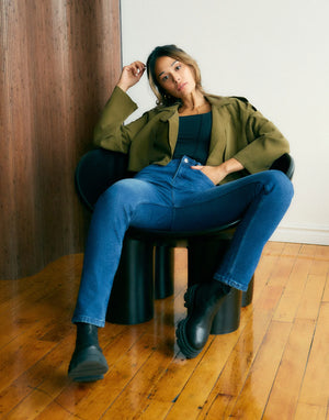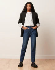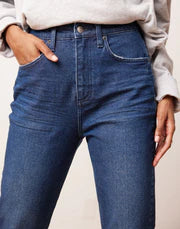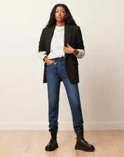 The Emily. Our slim silhouette inspired by 'mom jeans' has a slim fit around the hips and tapered cut throughout the leg.