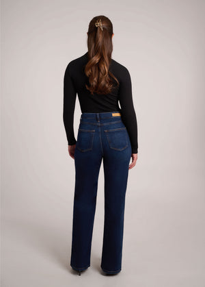 These dark indigo jeans feature a timeless wash, flattering classic rise, and a 32" inseam. Pair them with a tee and flats for day or a printed top and heels for night.